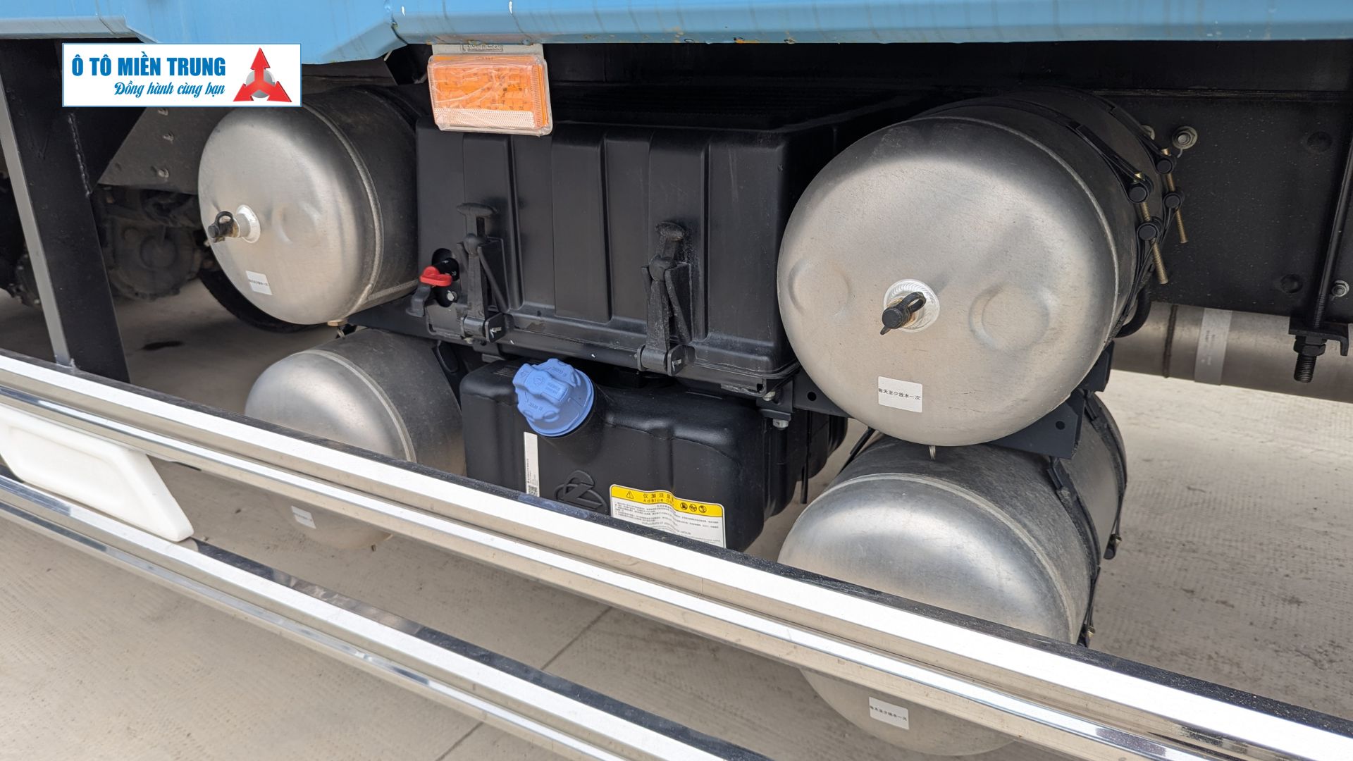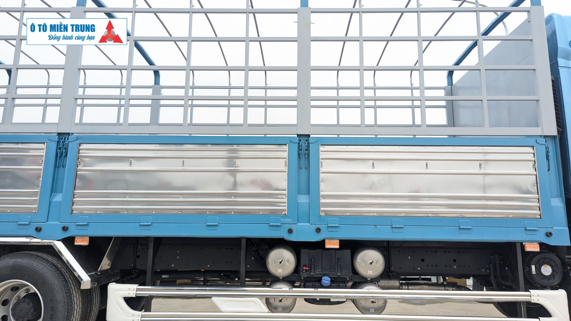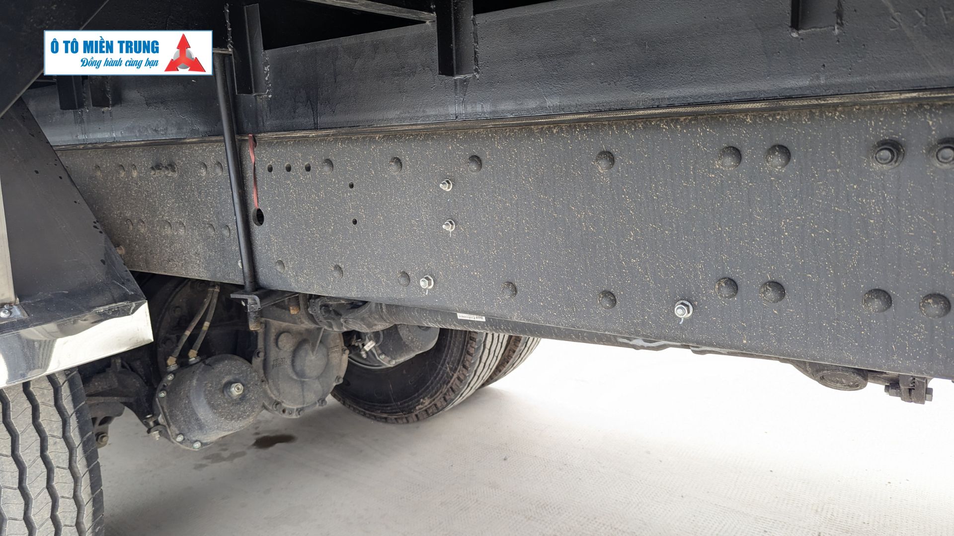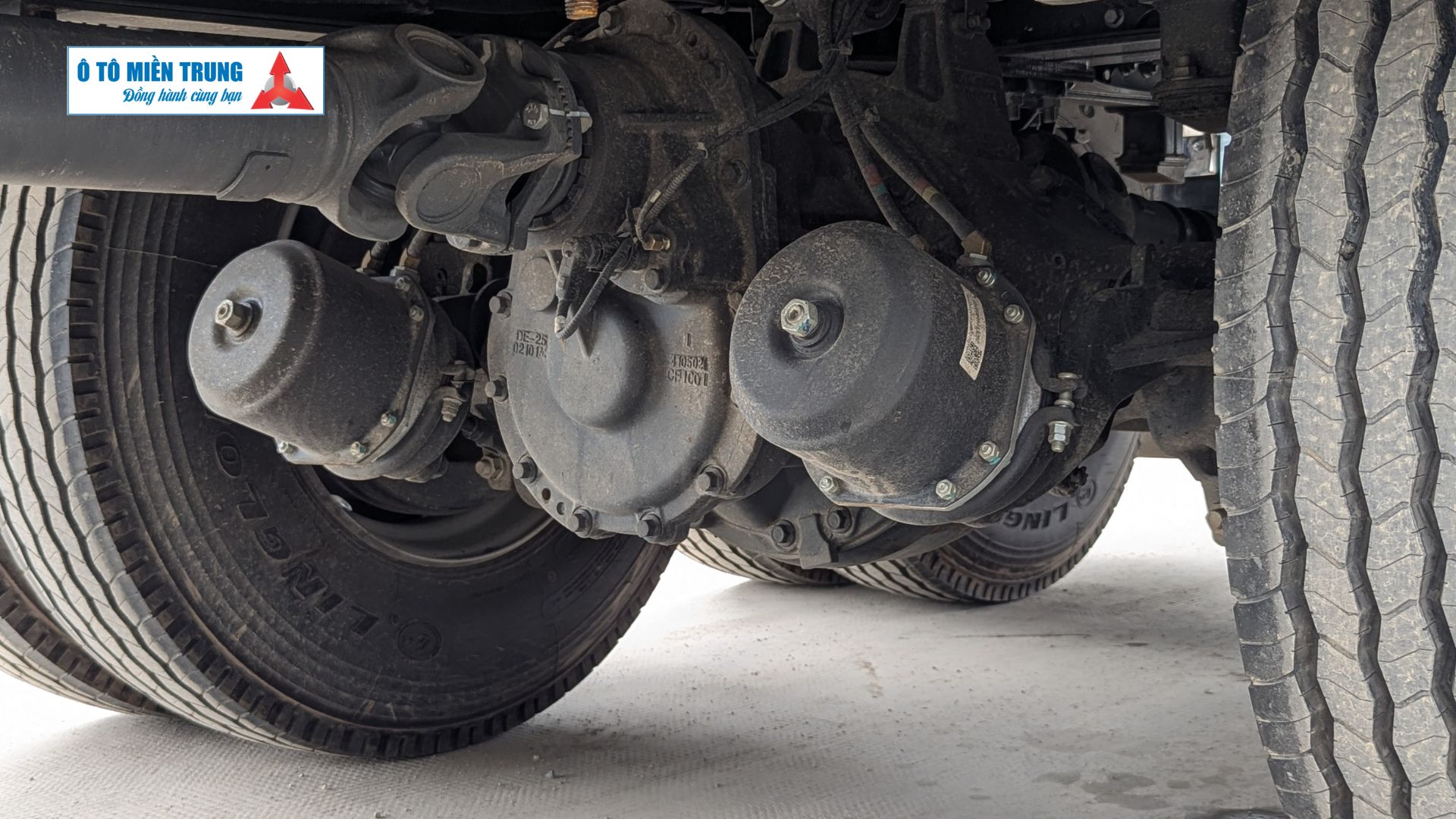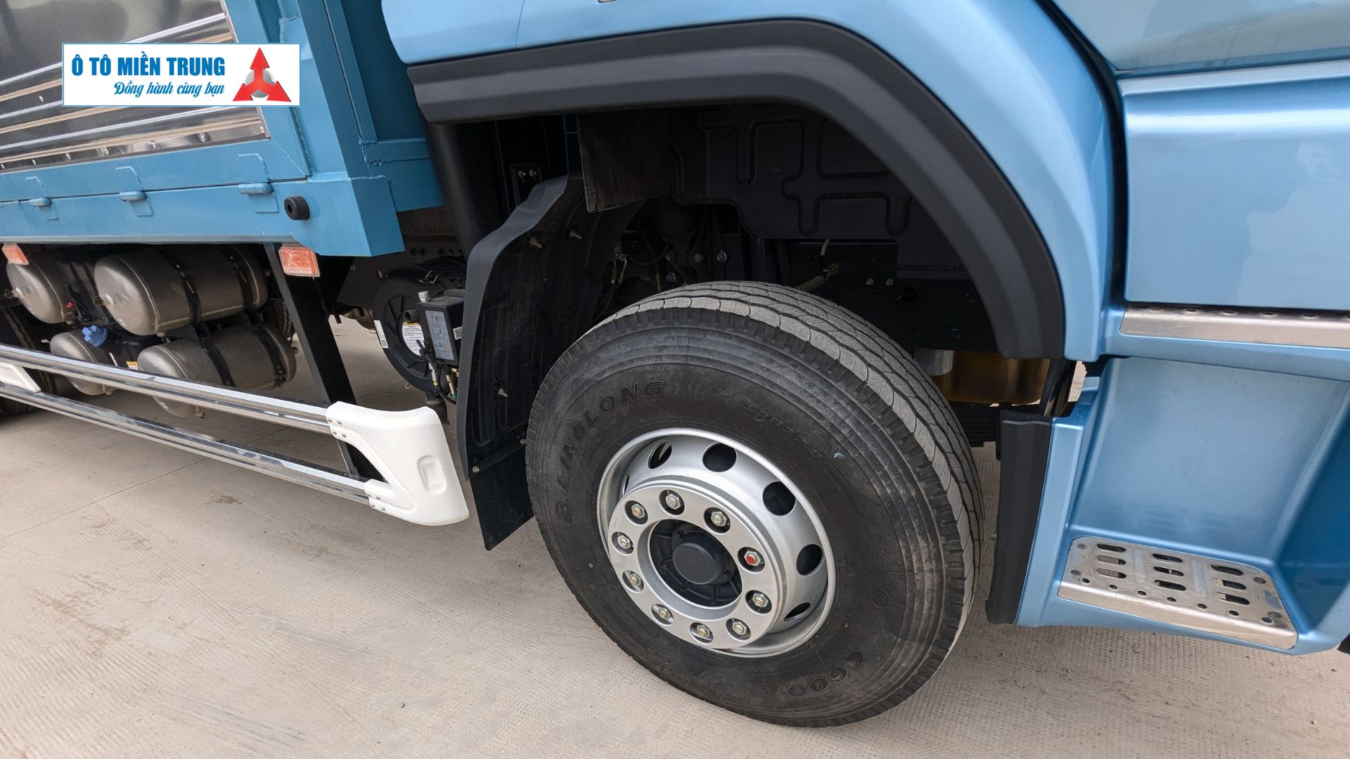 Lốp xe: Cỡ lốp 12R22.5 lốp bố thép không săm, chịu nhiệt và chịu tải cao, giảm rủi ro nổ lốp khi chạy đường dài.